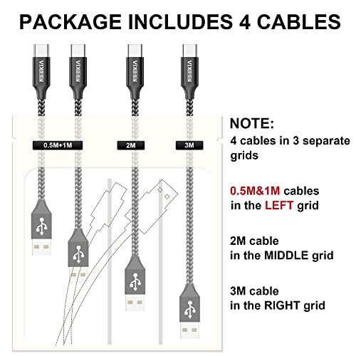 Cavo USB Tipo C (4Pezzi 0.5M 1M 2M 3M) Caricatore Ricarica Rapida Intrecciato Caricabatterie per Samsung S8 S9 S10 A30 A40 A50 A70 A20e, Xiaomi, Sony, Gopro, OnePlus