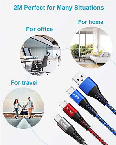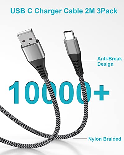 【Cavo USB C 2 Metri 3Pezzi】Cavo USB type-c ricarica rapida con nylon Intrecciato lo ha eccellenti proprietà anti-torsione e resistenza all'abrasione, rende resistente all'usura quotidiana. Cavo usb type-c 2 metri che può condividere con la famiglia, gli amici e gli amici e caricare quasi ovunque, tra cui camera da letto, ufficio, sedile posteriore della tua auto e altro ancora.