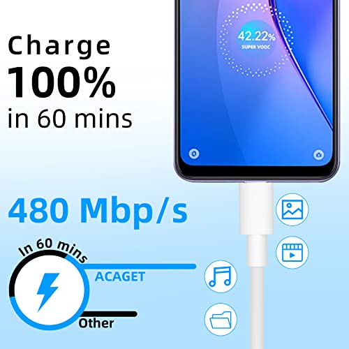 ⚡【65W Ricarica Rapida e Trasferimento dati】 velocità di trasferimento fino a 480 Mbps, caricabatterie rapido 5A, trasferimento dati e ricarica 2 in 1, cavo USB C per trasferire un film HD in pochi secondi,la capacità di ricarica del 60% in circa 30 minuti con questo cavo ricarica SUPER VOOC di tipo e adattatore per caricabatterie originale