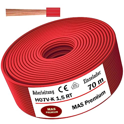 Cavo unipolare, H07 V-K, 1 x 1,5 mm², rosso, cavo singolo flessibile da 5 a 100 m (70m)