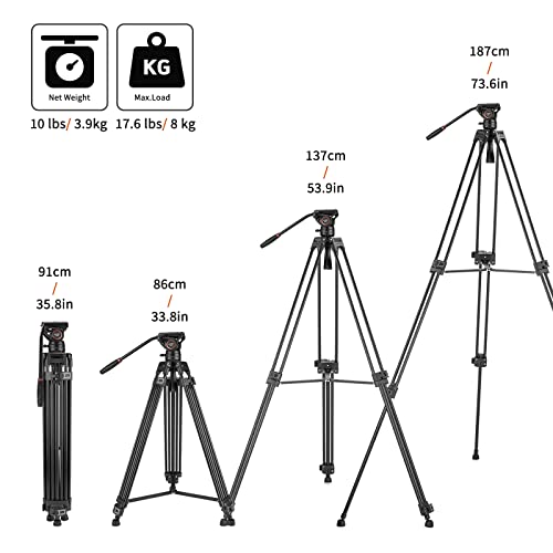 【Treppiede video professionale】Il sistema di treppiede video include un treppiede in alluminio a 2 stadi con una ciotola da 75 mm e una testa fluida con un carico utile di 8 kg, perfetto per supportare reflex digitali, fotocamere mirrorless e videocamere più piccole.