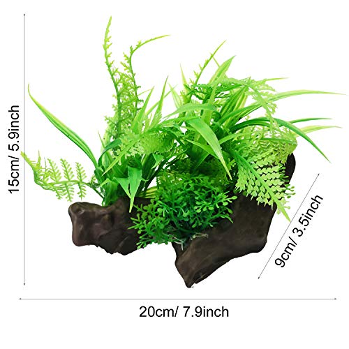 Cayway 9 Pz Piante Artificiali Acquario Kit, Piante Acquario Artificiali Plastica Arredo Grotta per Pesci in Grotta in Ceramica per Acquario Tronco, Ciottoli per Acquario Paesaggistica Decorazione