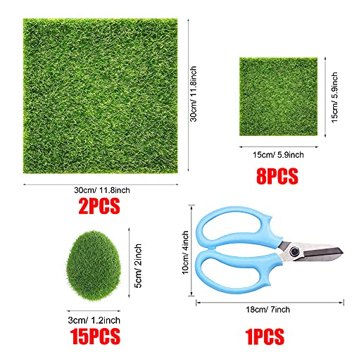 Set di erba da giardino artificiale: 2 pz di erba da giardino artificiale da 30*30cm, 8 pz di erba da giardino artificiale da 15*15 cm, 15 pz di muschio artificiale da 3*5 cm, 1 pz di forbici floreali.