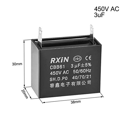 N/A CBB61 - Condensatore 450 V AC 3uF, 2 pin, in pellicola di polipropilene metallizzato, colore: Nero