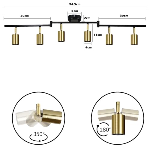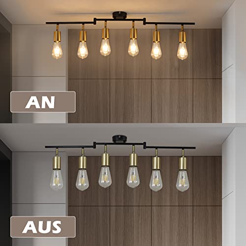 CBJKTX plafoniera plafoniera vintage nera - faretto da soffitto con 6 fiamme soggiorno E27 faretto retrò oro nero in metallo faretti industriali a soffitto per cucina camera da letto - senza lampadine