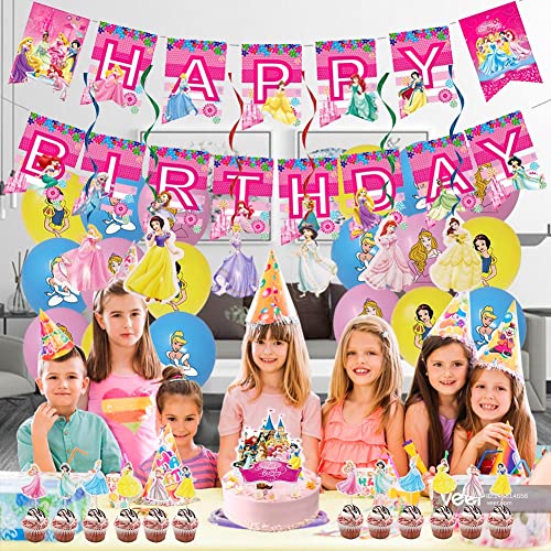 CBOSNF Principessa Decorazioni di Compleanno 50Pcs Kit Palloncino a Tema Princess, Principesse Forniture per Feste Striscione Topper per Torta Palloncini Decorazioni per Feste per Bambini