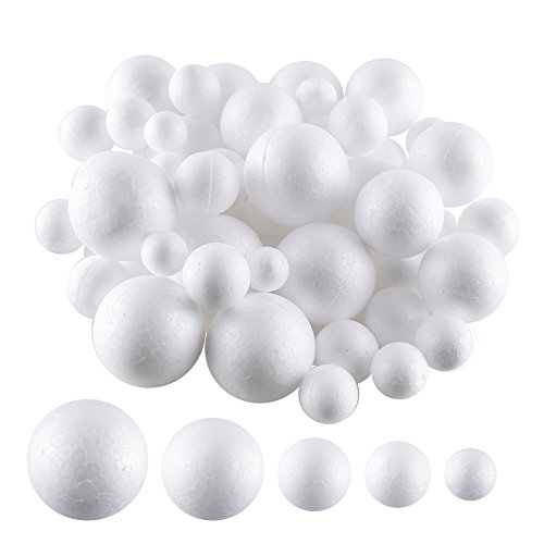 Set palline in polistirolo bianco: totale 60 pezzi, colore bianco, in polistirolo, in 5 misure differenti: 2 cm, 2,5 cm, 3 cm, 4,1 cm, 5,1 cm.