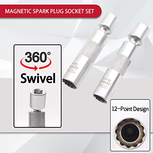 CCLIFE 2 Chiavi 3/8 Pollici Chiave a Bussole Snodo Candelette e Candele 14mm 16mm