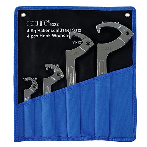 CCLIFE 4 Pezzi Chiave a Settore con nasello tondo regolabile 19-170mm chiave a gancio c