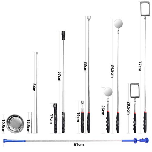 CCLIFE 7 Pezzi Strumento di Telescopico Magnetico LED Auto Specchietto Telescopico Pick Up Strumento di Artiglio
