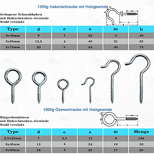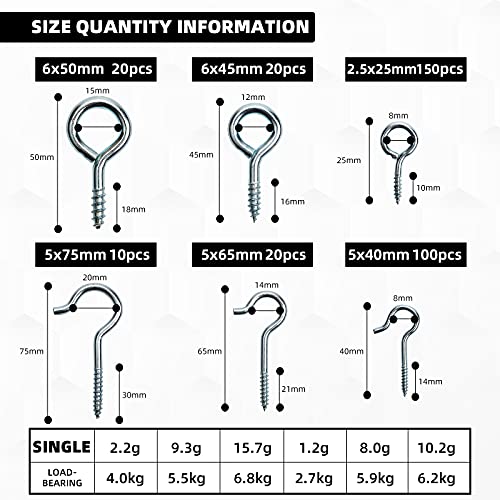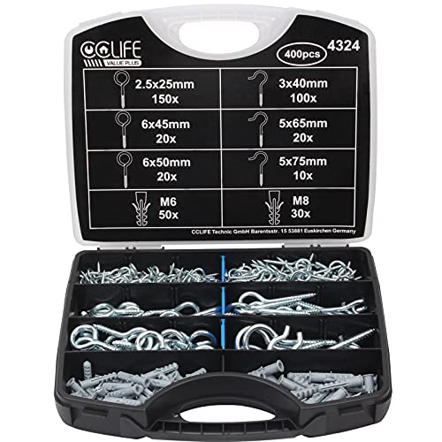 CCLIFE Set di 400 Viti a Occhiello e Ganci Vite con Tasselli Autofilettanti per occhiello in legno M6 M8