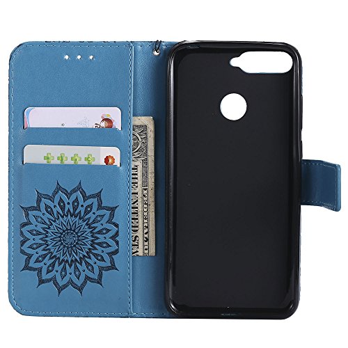 CCOTDINFOR Huawei Y6 2018 Custodia Premium PU Leather Mandala Fiore Elegante Wallet Custodia a Custodia Folio Flip Cover Case con Kickstand Card per Huawei Y6 2018 / Honor 7A Blue Sunflower KT.