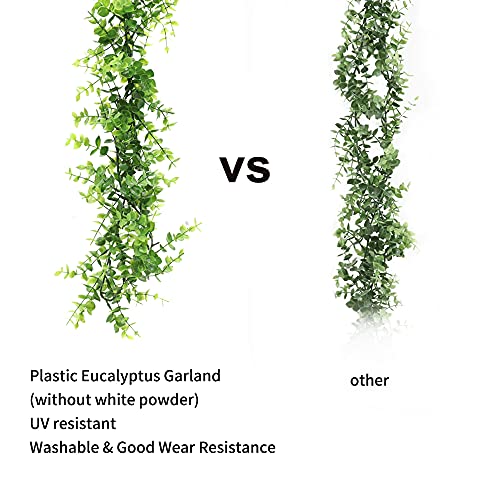 ALTA SIMULAZIONE: questa ghirlanda di eucalipto ha molti rami, tutte le foglie sono rimovibili e reinstallate puoi appenderla in qualsiasi posto tu voglia. La finta ghirlanda di eucalipto è impermeabile e resistente ai raggi UV può mantenere un aspetto fresco all'aperto o al coperto