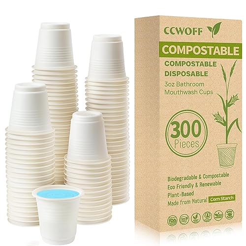 CCWOFF Confezione da 300 tazze da bagno da 85 ml, 100% compostabili, tazze ecologiche biodegradabili, boccali per collutorio per risciacquo bocca, bicchierini usa e getta per degustazioni