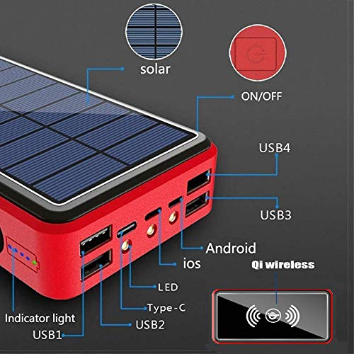 ✾ [4 porte di uscita USB e ricarica wireless] Batteria esterna solare 4 uscite USB integrate e ricarica wireless da 10 W, il caricabatterie per telefono solare consente di caricare 5 dispositivi contemporaneamente! Il caricabatterie Solar Power Banks è compatibile per Iphone 12 pro max 11 X XS XR 8 7 Samsung Galaxy S6 Edge S5 S4 S3 Note 5 4 3, HTC, GPS, MP3, MP4, fotocamere, PSP, smartphone, tablet e tutti i dispositivi USB
