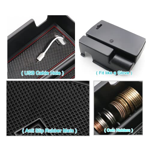 CDEFG Compatibile con Compass 2021-2024 Vano Portaoggetti Bracciolo Scatola di Controllo Centrale del Bracciolo Scatola di Immagazzinaggio Organizer con Tappetino Antiscivolo Accessori (Rosso)