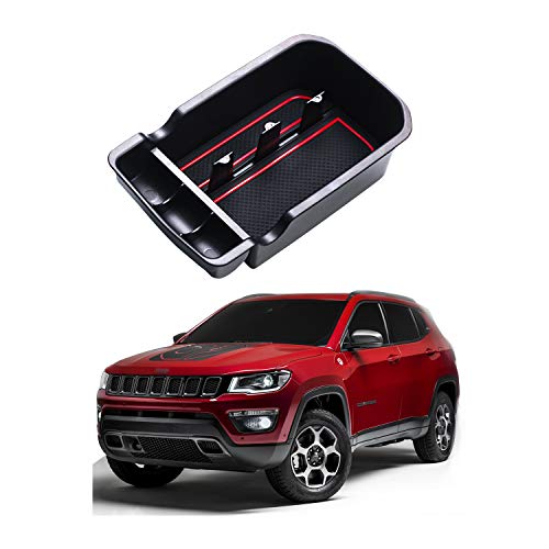 CDEFG Compatible con Jeep Compass 2018-2021 Vano Portaoggetti Bracciolo Scatola di Controllo Centrale del Bracciolo Scatola di Immagazzinaggio Organizer con Tappetino Antiscivolo Auto Accessori