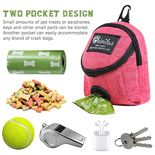 Cdemiy Porta Sacchetti Cane, Portasacchetti x Cane, Dispenser Sacchetti Cane Con 2 Tasche, Velcro e Moschettone, Sacchetti Cane per Rifiuti Cacca Borsa Addestramento Cane per Attività AllAperto (Rosa)