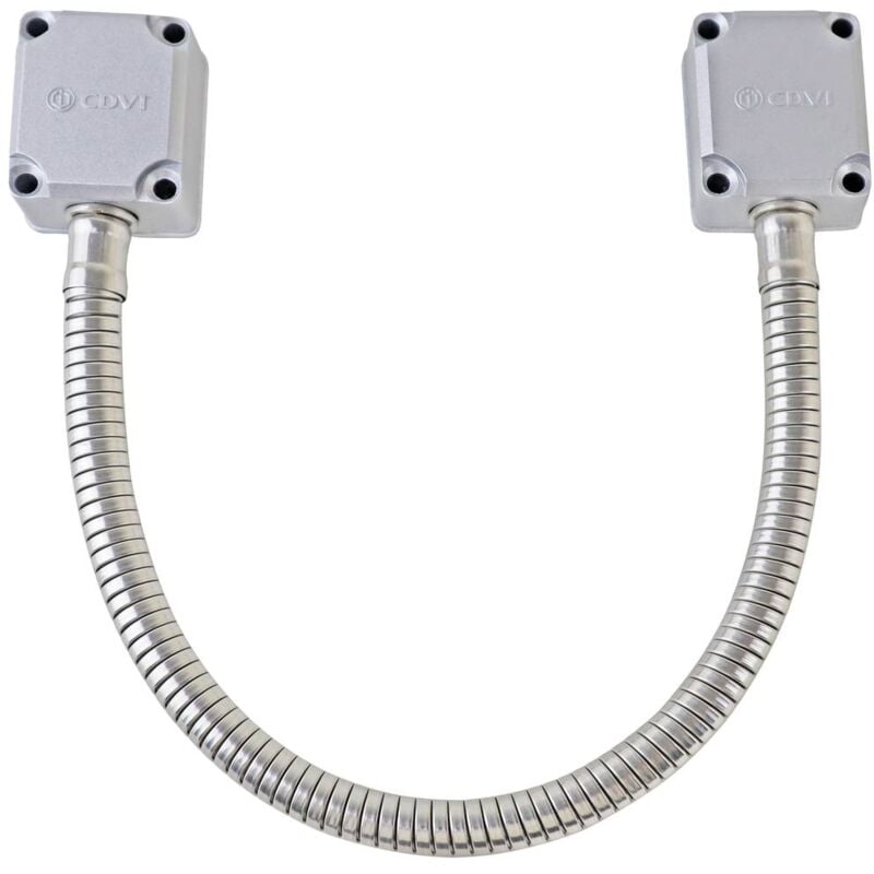 Dettagli tecnici Tipo prodotto Transizione del cavo Passaggio cavi GF45 Le transizioni dei cavi CDVI offrono un metodo sicuro per il collegamento dei cavi tra un punto fisso e un punto mobile (ad es Telaio porta e battente porta). Il cavo è protetto dal tubo flessibile a spirale in acciaio inox. Il diametro interno del tubo flessibile a spirale è di 9 mm ed è quindi adatto per i più comuni cavi a più fili per serrature e controlli delle porte. Il passaggio dei cavi GF45 è il passaggio dei cavi più comune sul mercato. I coperchi dei terminali rettangolari in zinco pressofuso sono fissati mediante 4 viti. Testo tradotto automaticamente Punti di forza e dettagli Diametro: esterno = 13 mm, interno = 9 mmTubo flessibile in acciaio inox 450 mmCappucci terminali: Zamak ®Passaggio dei cavi facile da usare Incluso nella consegna Materiale di fissaggio. Requisiti di sistema null