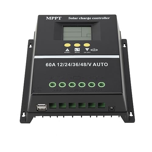 CDZHLTG MPPT - Regolatore di carica solare, 60 A, regolatore di carica solare, MPPT 12 V, 24 V, 36 V, 48 V, pannello solare MPPT, controller fotovoltaico, 7 modalità di funzionamento con LCD Dual USB