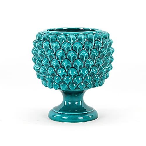 CEAR ceramiche - Mezza pigna colore Verde Ramina, pigna portavaso, portaoggetti, portadolci in ceramica siciliana di Caltagirone H cm 21
