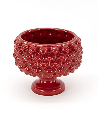 CEAR ceramiche - Mezza pigna rossa, pigna portavaso, portaoggetti, svuotatasche, portadolci in ceramica siciliana di Caltagirone