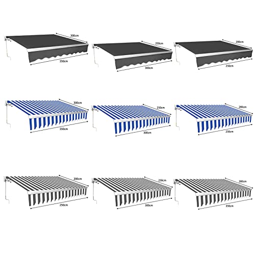 Cecaylie Tenda da sole con braccio articolato manuale 250 x 200 cm, Tenda da Sole Retrattile, a Righe Blu, per terrazzo, balcone, alluminio/poliestere