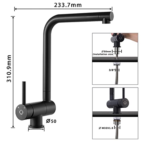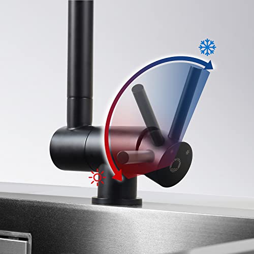 √ Rubinetto Cucina Pieghevole: Questo Miscelatore Cucina può essere facilmente ruotato di 360° in orizzontale e di 90° in verticale. Anche se il rubinetto cucina nero è montato di fronte a una finestra, può facilmente aprire la finestra. Inoltre, la flessibilità consente di adattare l'installazione a destra e a sinistra alle proprie abitudini di utilizzo.