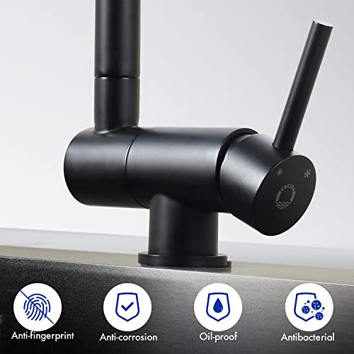 √ Materiali di Qualità: il rubinetto cucina è realizzato in acciaio inox senza piombo, molto robusto e resistente ai danni. La superficie del miscelatore cucina nero è nanotecnologica, resistente alla ruggine e all'olio e facile da pulire. Per la vostra salute, tutte le parti lavorate sono prive di contaminanti e odori.