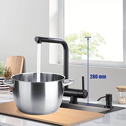 √ Più Spazio per Voi: A differenza del rubinetto lavello cucina ad arco, la forma a "L" crea molto spazio sotto la bocca (28 cm). Sotto il rubinetto si possono mettere pentole, padelle o bottiglie di grandi dimensioni. Inoltre, il beccuccio girevole a 360 gradi consente un facile accesso all'acqua o la pulizia del rubinetto da cucina stesso.