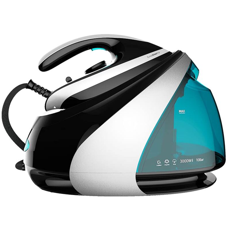 Centro stiratura tra potente che grazie alla sua pressione di 10 bar è in grado di far fronte anche alle pieghe più difficili. Caldaia semi-industriale Geiser Boom tra potente che fornisce un flusso di vapore simile a quello dei centri di stiratura professionali. Controllo della temperatura tramite tessuto, è possibile modificare la temperatura della suola adattandola con il tessuto del capo per prendersi cura ancora di più dei tessuti. Potente centro di stiratura compatto da 3000 W, che isce un rapido riscaldamento del ferro e una stiratura semplice ed efficace. Suola in ceramica tra sottile con rivestimento in ossido di titanio Turbo Slide Pro per risparmiare tempo durante le sessioni di stiratura, grazie alla distribuzione omogenea di vapore e calore. Vapore professionale: il passaggio singolo effettua una scarica di vapore equivalente a 625/g min. Vapore continuo: vapore continuo per passate lunghe e ris tati professionali con 155 g/min. Sistema di p izia automatico Cyclo Clean di