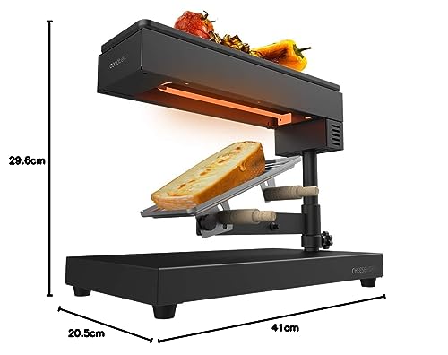 Cecotec Raclette Cheese&Grill 6000 nero. Potenza 600W, funzione grill, finitura in acciaio inox, termostato regolabile, 2 spatole in legno, griglia superiore antiaderente