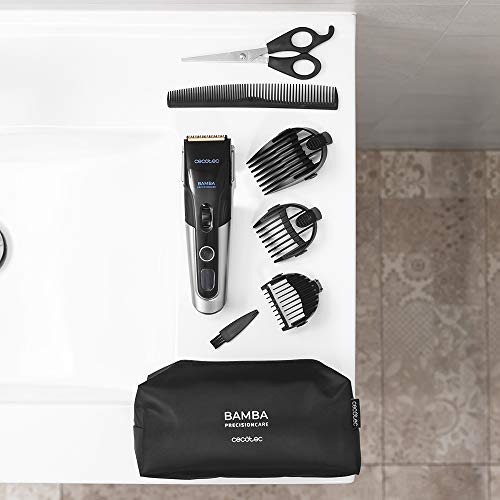 Cecotec Tagliacapelli in titanioPrecisionCare Titanium. Lama in acciaio inossidabile rivestita in titanio, batteria al litio, durata fino a 120 minuti, uso con e senza cavo, 3 pettini