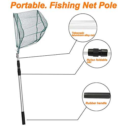 Ceestyle 190CM Guadino da Pesca Pieghevole Retino Pesca Telescopico Pieghevole Guadino Pesca Trota Asta per Guadino da Pesca per Stagni Trota Carpa Acquario Oggetti Galleggiant Pesca Uccelli