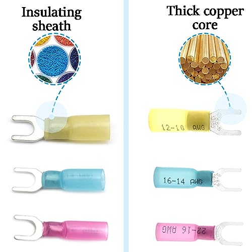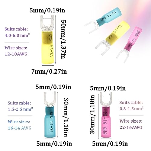 CEEYSEE 100 Pezzi Capicorda a Forcella Ø M5 capicorda elettrici a forcella Elettrico Termorestringenti Isolati Crimpare Terminale Splice Connettori - Per Cavi Da 0.5 - 6,0 mm² (RFZ)