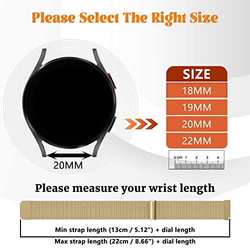 CeiBand Cinturino in Metallo per 20mm 18mm 22mm Larghezza Ansa, Uomo Donna Acciaio Inossidabile Magnetico Intrecciato a Rete Cinturini - Oro