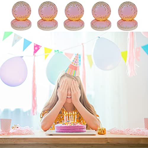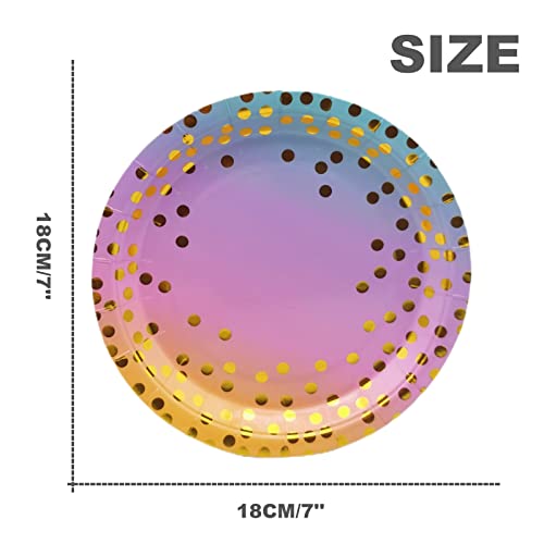 CEILIWEN Piatti di carta color oro rosa, piatti usa e getta da 17,8 cm, piatti rosa con puntini in lamina d'oro, confezione da 50 (piatti per feste arcobaleno)
