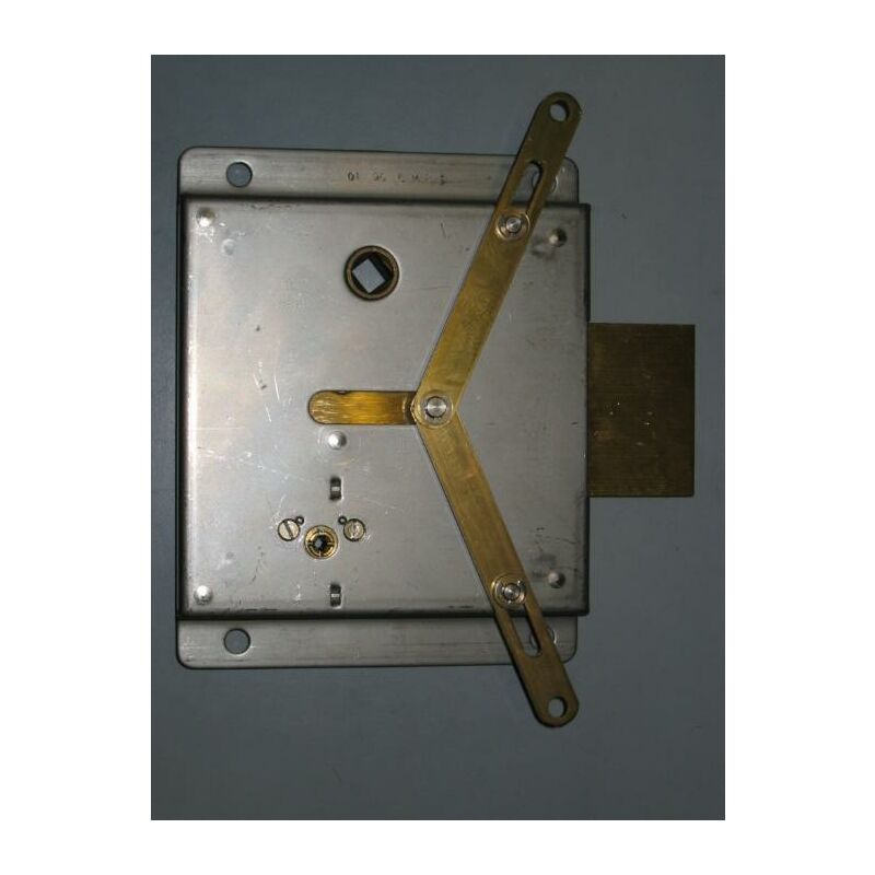 Serratura per porta cabina elettrica in acciaio inox AISI304 con cilindro per i movimenti in ottone. La serratura e' a tre punti di chiusura, il pomolo in poliammide colore nero. Fornita con 2 chiavi PRIVATE.