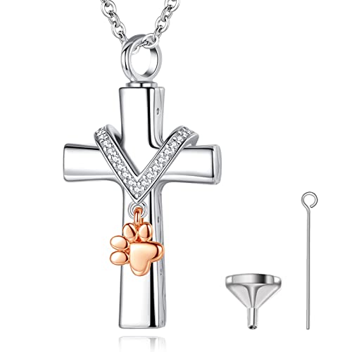 CELESTIA Collana Urna Funeraria, Croce Zampa Ciondolo per Riempire, Argento Sterling 925 Urna per Ceneri Cane, Lutto Gioielli Commemorativo