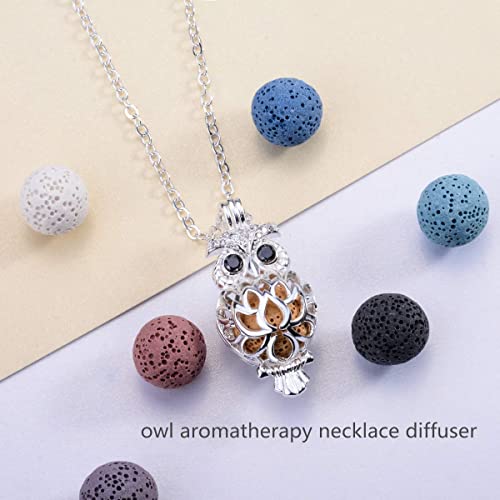CELESTIA collane Fashion diffusore di Oli Essenziali, Placcato Argento Gufo Ciondolo portafoto con 7 Assorbente Lava e Perline Colorate Catena da 61 cm, aromaterapia Gioielli, Regali per Ragazze