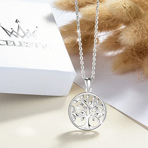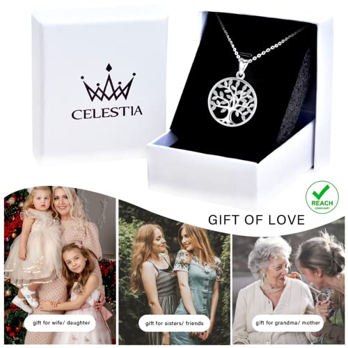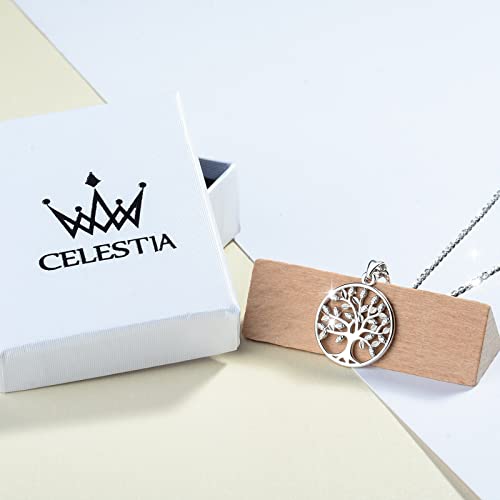 CELESTIA Donna Collana Albero Della Vita Ciondolo Sterline Argento 925 Gioielleria Regali per Mamma Figlie