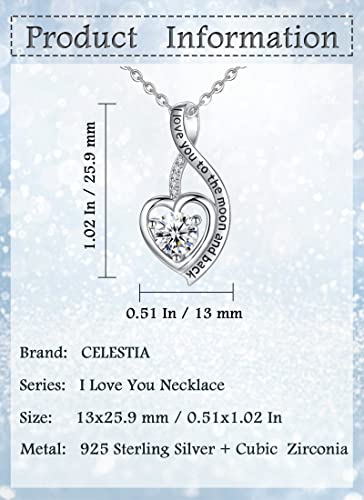 CELESTIA Donne Collane di Argento Sterling 925, Pendente di Cuore con Messaggio 'Ti Amo Fino Alla Luna e Ritorno', Catena 46cm, Gioielli...