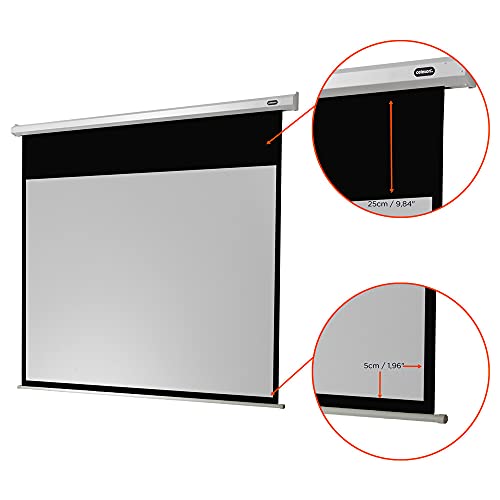 Schermo motorizzato elettrico, completamente attrezzato e completamente preconfigurato - include tela con mascheramento nero tutto intorno e telecomando IR