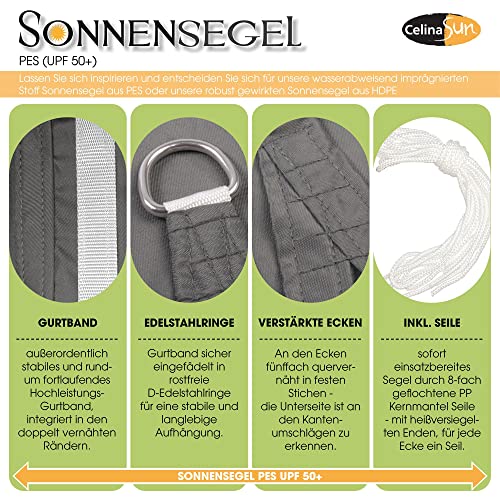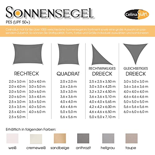 CelinaSun tenda parasole a vela protezione solare PES UPF 50+ protezione UV certificata poliestere giardino balcone idrorepellente rettangolare 4 x 6 m bianco crema