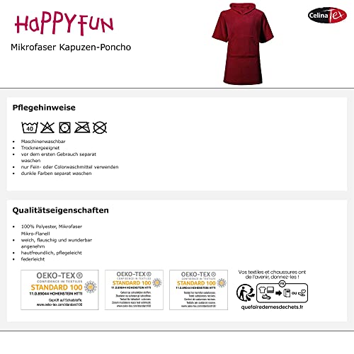 CelinaTex Happyfun Surf Poncho 80 x 110 cm con Tasca a Marsupio Donna Uomo Bambino Micro Flanella Bordeaux