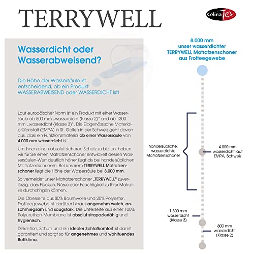 CelinaTex, proteggi-materasso Terrywell in spugna, membrana in TPU, impermeabile e traspirante, assorbe fino a 8000 ml di liquido, Spugna, bianco, 90 x 200 cm