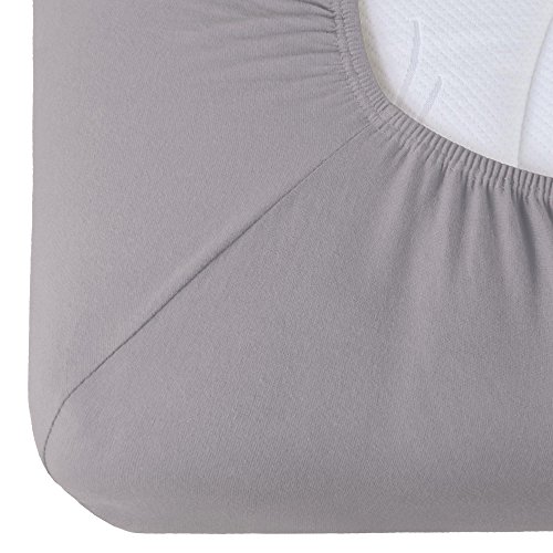 Lenzuolo in 100% cotone makò pettinato, trama in jersey, antiscivolo, peso circa 160g/ qm, certificazione Oeko-Tex Standard 100 "Fiducia nel tessile" conforme ai requisiti relativi alla tossicità.