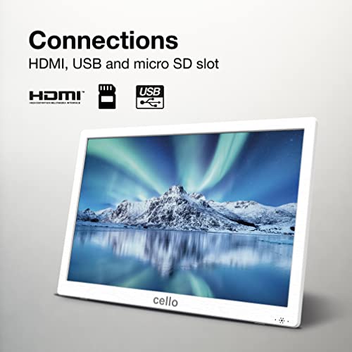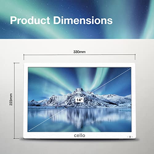 Cello C1420DVB - TV digitale e analogico portatile, ricaricabile, 14", telecomando, con cavo di alimentazione e cavo di ricarica da 12 V, con porta HDMI USB e SD, colore: Bianco