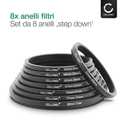 CELLONIC 8X Anelli adattatori Filtro ‘Step Down' Anelli per filtri con Diametro Inferiore su Obiettivo con Diametro ø più Grande - Accessorio irrinunciabile fotoamatore