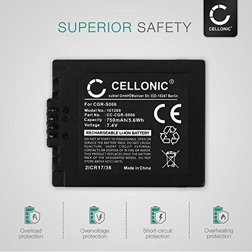CELLONIC 2X Batteria CGA-S006, DMW-BMA7 Compatibile con Panasonic DMC-FZ18 DMC-FZ28 DMC-FZ30 DMC-FZ38 DMC-FZ50 Ricambio 750mAh Sostituzione Sostitutiva Battery
